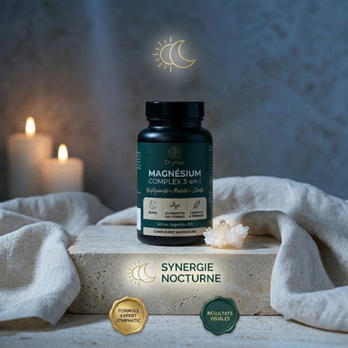 Drynae agit à la racine du problème : il relance votre circulation lymphatique pour aider votre corps à drainer naturellement l'eau et les toxines — sans effet diurétique ni contrainte.